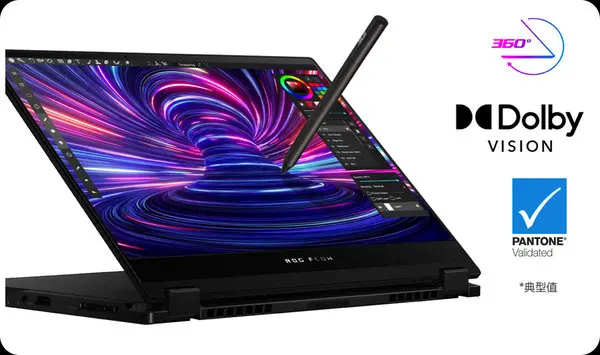 ROG幻13作为一款13英寸的全能本有着十分小巧轻薄的机身,轻约1.3kg,薄至15.8mm,能轻松放入行李箱、旅行包中,即使徒步骑行也没有负重感。并且机身支持360°翻转,可在笔电、平板、分享、游戏四种应用模式中切换,满足多场景创作需求。屏幕为高清触控屏,拥有1920×1200分辨率、100% sRGB广色域,画面显示清晰细腻,颜色饱满,亮度高达500尼特,在户外使用也能看清画面内容,还支持Adaptive Sync防撕裂技术,确保运动画面清晰、无撕裂。性能上,ROG幻13搭载AMD 锐龙7 6800HS处理器,内置16GB 6400MHz高频双通道内存和512GB PCIe 4.0固态硬盘,不管是专业创作,还是游戏娱乐都能应对自如。