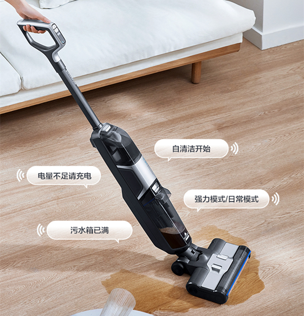 必胜轻量洗地机Lite会在工作模式、水箱、自清洁等几乎所有状态切换时都有语音提醒,很方便老人使用。