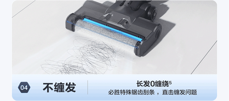 在对于毛发的清理方面,这款洗地机也有绝活。必胜轻量洗地机Lite在滚刷底部采用了梳齿结构设计,这种设计可以有效降低毛发缠绕在滚刷上的概率,对于爱掉头发的用户来说这个功能是挺人性化的。