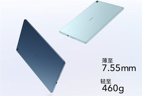 荣耀平板X8采用了铝合金轻薄机身,薄至7.55mm(尺寸为 240.2×159×7.55mm),轻至460g ,上课出差随身携带,小巧方便。曲面收弧设计贴合手掌弧度,握持手感舒适。