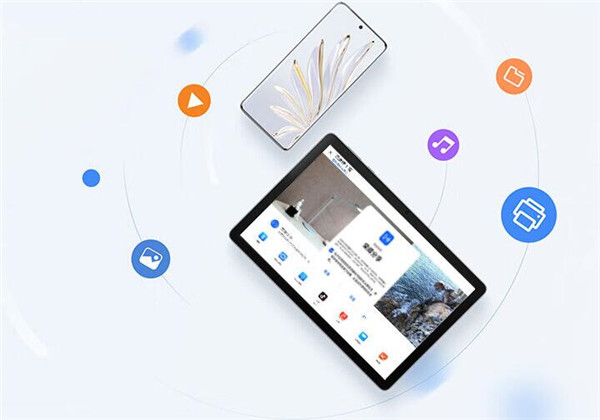 荣耀分享,免流量疾速传输。使用荣耀分享,手中的荣耀平板X8,可以在荣耀手机、打印机等设备之间免数据流量快速传输,文件再大、图片再多都能轻松秒传,打印作业资料分分钟的事。