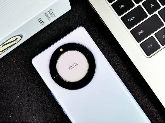 值得注意的是,该机背部最大的亮点是采用了标志性的“满月星环”设计,让模组更像是一圈圆环,被嵌在手机后壳上。同时,双摄与闪光灯分散在圆环左右两侧与上部,对称美油然而生。
