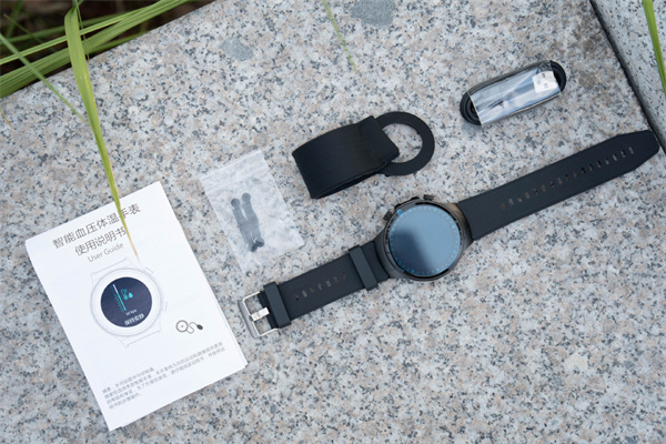dido E40S 气泵式血压智能手表,顾名思义,相比传统智能手表来说,它拥有血压监测功能,并且与传统的血压监测设备一样,采用的是气泵式血压监测,精确性更高,所以它在配件方面也有一点不同,除了手表本体与磁吸式充电线以外还有一个气囊装置。