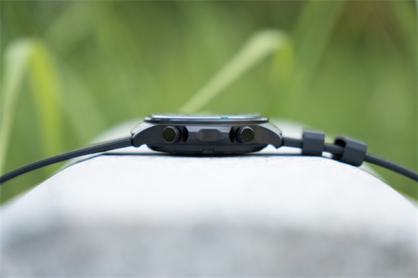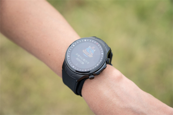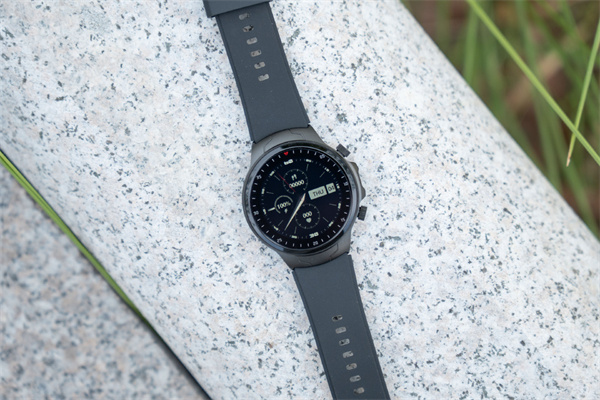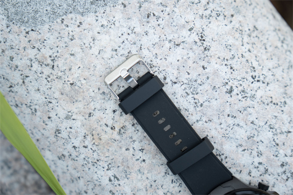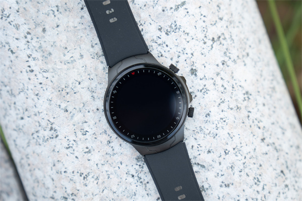 首先来看下手表本体,整体的外观造型为圆形表盘设计,整个的外观尺寸与市面上主流的智能手表无异,此外在屏幕周边还有一圈刻度盘,在息屏时的颜值也是相当到位,整机为金属材质,所以质感也非常不错。