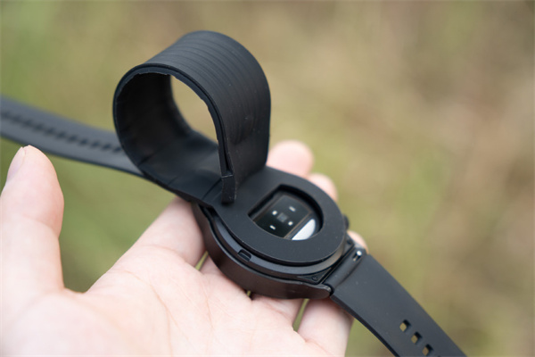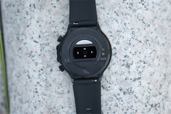 来到手表背面,这里的配置就相当的丰富了,首先它搭载了进口准医疗级硬件,降低测量误差值主控芯片:Nordic52832 、血氧芯片:OSRAM(欧司朗)2703 、体温传感器:CT1711 阵列 、光电芯片:OSRAM(欧司朗)2703,相较于传统智能手表来说搭载的监测硬件更为丰富,简单来说就是它很专业。