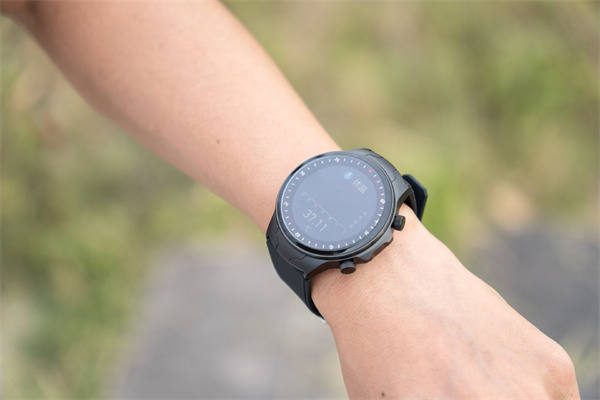 下面再来上手体验一下,开机后默认的表盘给我眼前一亮的感觉,配合表盘周围的实体刻度盘,整体的精致感十足,同时表盘的显示项目也非常丰富,有心率、步数、电量等等,同时可以通过App更换不同形式的表盘。