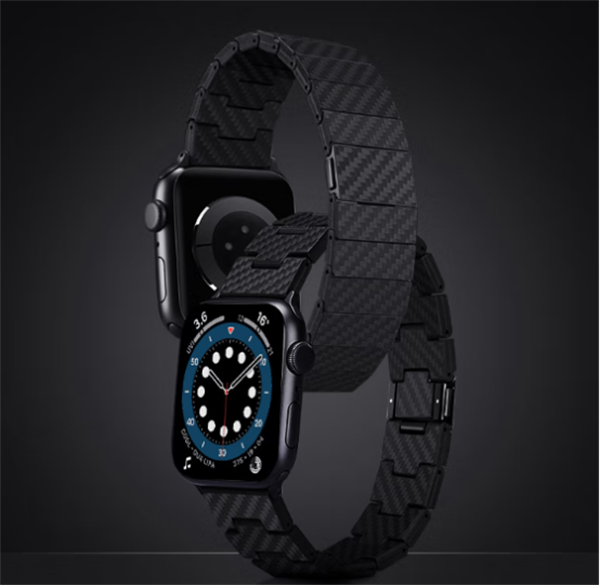 这款表带采用小丝束碳纤维,工艺复杂材质更稀缺,细纹纹路细腻贴合。手腕佩戴更舒适。表带通过10KG拉伸测试未断裂,无惧汗液腐蚀,使用寿命长。黑色碳纤维为材料本色,不褪色。棉签轻蘸酒精擦拭即可使表带光洁如新。表扣创新设计磁吸+弹簧卡扣开启闭合流畅自如。