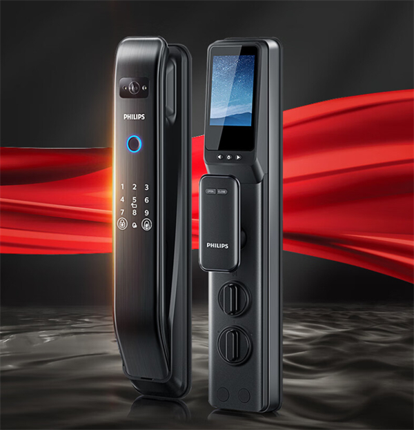 飞利浦智能门锁,有超大广角智能猫眼,双夜视补光,白天黑夜同样清晰,夜间三米内可看清人形,一米内可看清五官轮廓。3.5英寸高清全彩大屏,轻松看清门外方可,老人孩子使用更加放心。