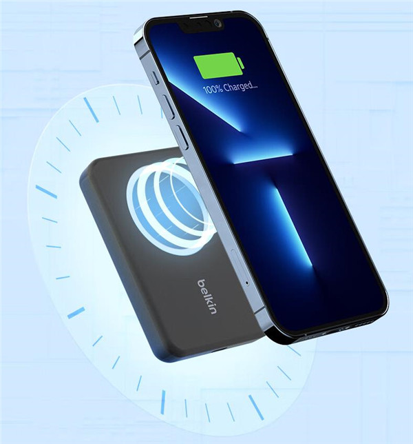 贝尔金磁吸无线充电宝支持无线充电,兼容MagSafe无线充电功能,可以用于iPhone 12和iPhone 13系列手机充电,当然新款的iPhone 14也是可以使用的。