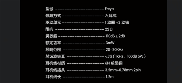 Freya有着优秀的做工、丰富的配件、惊艳的颜值,三频均衡的声音密度控制、弹性十足的低频,自然细腻的人声,清晰宽松的高频,宽松不糊不过暖,无论是从外观、做工、听感来说,Freya都是超值的。