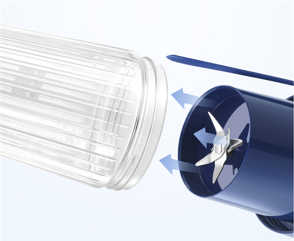 荣事达无线榨汁杯采用了隐形式的导图,并且它的刀头必须与杯身合并才能启动搅动功能,一旦分离便是会自动断电,因此它的安全性非常可靠!最重要的是,它有着旋风立体式的搅动方式,每分钟有着17000PRM的转速。