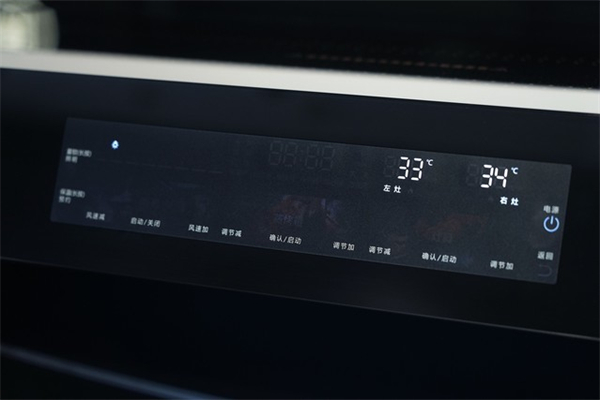 机头顶部融入了一块“幻彩屏”,触控灵敏,系统反应迅速,通过这块屏幕我们可以控制烟机、灶具、蒸烤箱,让烹饪更简单。
