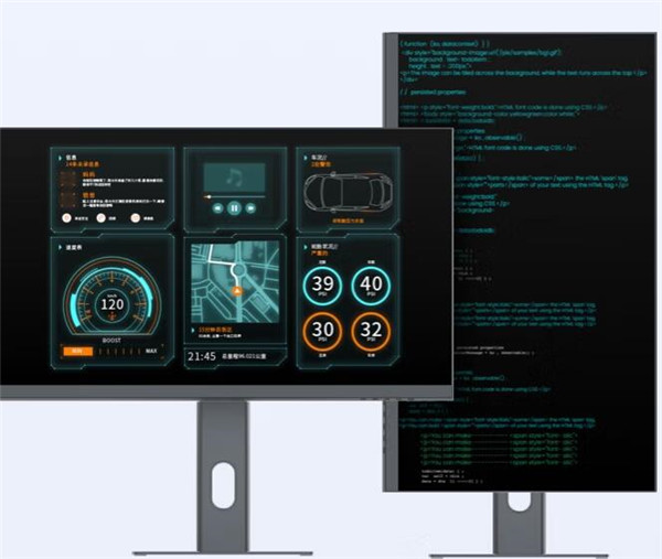 屏幕支架选用了一柱镂空设计,给沉闷桌面带来跳跃灵动,并为可旋转结构,27寸MAXHUB 智能显示器可以轻松切换显示器的横竖屏模式,横屏做设计、审影片更沉浸,竖屏则更适合程序员、设计师等人群,看代码、浏览文档不累更清晰。