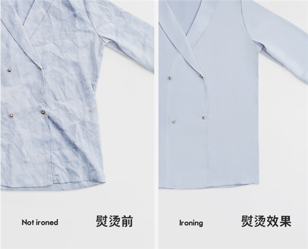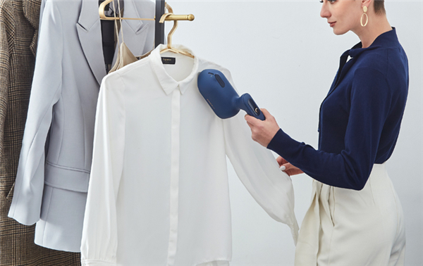 舒乐氏手持挂烫机能够很迅速的将褶皱衣物熨烫平整,挂烫机扫过之后褶皱消失。即使是纽扣下方位置,舒乐氏手持挂烫机的‘美人尖’也能够完美熨烫平整。