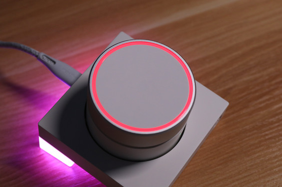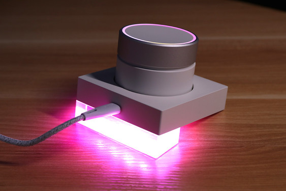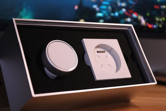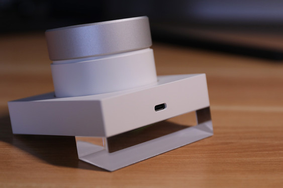 除了耳机本体,耳机盒和底座的设计也得到了很好的延续,阳极氧化铝合金的上盖在视觉和质感部分都表现得不错,扭动旋钮的手感也很细腻,阻尼感适中,并且也有一定的段落感,甚至拿来当做解压玩具也不是不可以。表面经过电泳处理的底座,也同样具有出色的质感,底座的支脚采用了亚克力的材质,也拥有和耳机上相呼应的灯效。