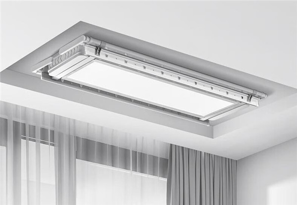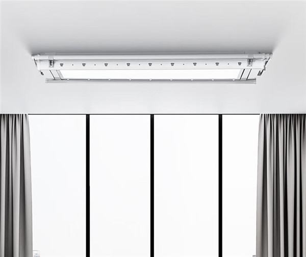 凯迪仕T22电动晾衣架将升降关闭,缩回到房顶上方,这是伸出晾衣杆的视觉效果。这已经达到了传统晾衣架的长度,可以挂好多衣服啊。