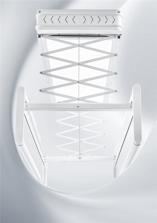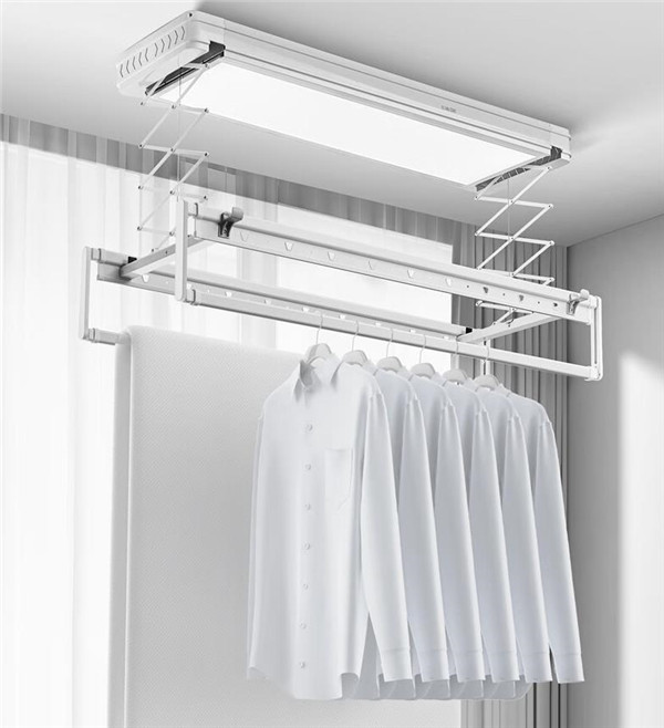 同时晾衣架下降时,手轻托即可自动停止,下降高度随您而定。这项功能会给我们生活带来极大的便利,符合人们需求,灵敏易操作,打破了普通晾衣架的固有模式。使用遥控器控制再下降一点,这个位置整理衣服刚刚好。如果想让凯迪仕T22电动晾衣架直接升上去,轻托一下,就到顶了。