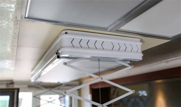 凯迪仕T22电动晾衣架抽拉晾被子杆操作,就是这么简单轻松,高度正好,轻松晾晒。再高一点的位置,即使挂着衣服,晾衣杆也是非常方便可以随时抻出。