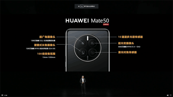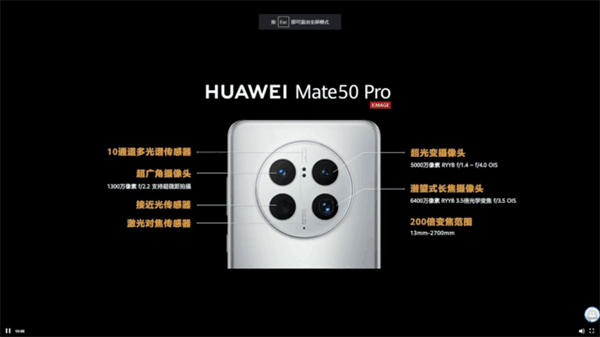 最大的升级还是Mate系列主打的影像性能,华为Mate 50 Pro升级了10通道多光谱传感器、激光对焦传感器、6400万像素潜望式长焦镜头、接近光传感器,以及支持200倍变焦范围。