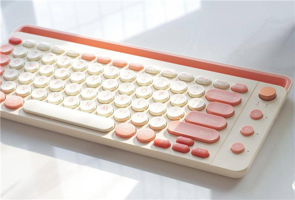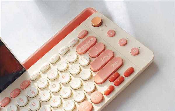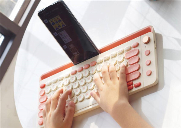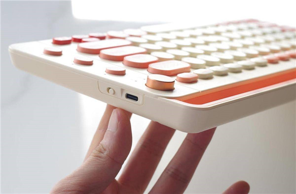 圆形的键帽带来了比传统键盘更长的键程,摁下去有一种静音机械轴的感觉,静音、舒适的手感让人爱不释手,这种手感在移动办公娱乐方面还是很受欢迎的。复古圆形凹键帽可贴合指尖形状提供流畅舒适的手感,长期办公或游戏都不会觉的累。