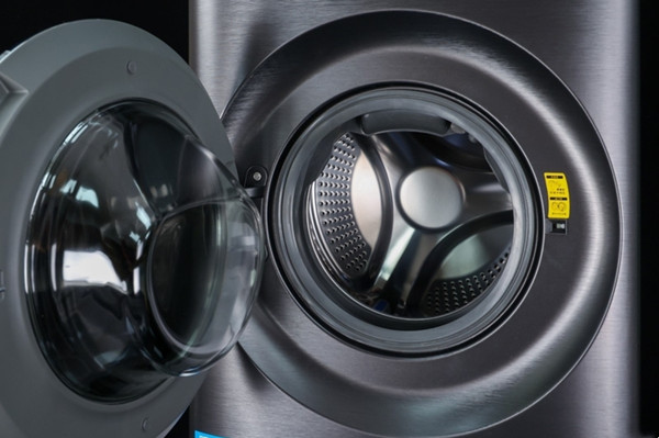 机身正面整体采用无界设计,除上下滚筒门等元素外没有太多繁杂线条,整体呈现大气内敛的观感。上下筒滚筒门均采用双层刚钻玻璃,兼具美观大气的设计与防烫保护等功能性。整体来看,这款双驱分舱洗衣机具有统一、和谐的设计风格与合理的功能布局,与常规滚筒洗衣机一般能够适应包括嵌入在内的多种摆放方式。