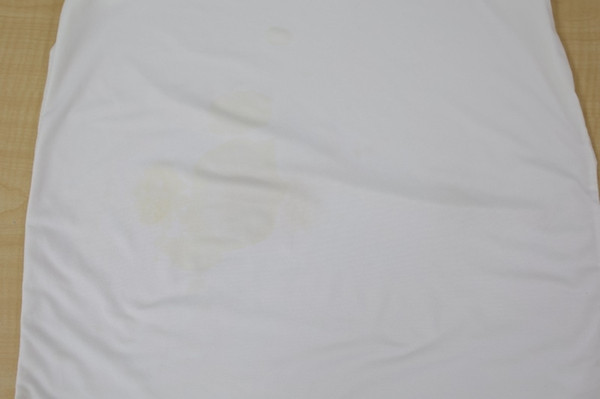 程序结束后取出白色T恤,可见除最顽固的辣椒油渍与沙茶酱渍以外,后三类污渍均已无法看到痕迹,辣椒油痕迹仅有少量残余,沙茶酱痕迹面积较大但整体颜色更淡,经过多次清洁或人工针对处理后也有完全复原的可能。