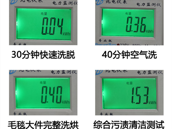 对毛毯等大件进行一次完整洗烘程序,测得耗电量为0.4千瓦时。