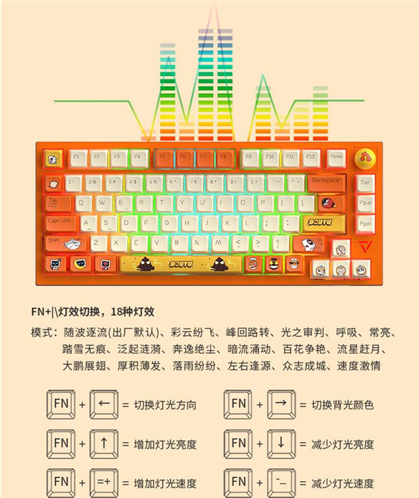倒是它的键帽是真的好看,MDA高度的热升华键帽,萌萌的卡通图案,相信很多朋友会喜欢。