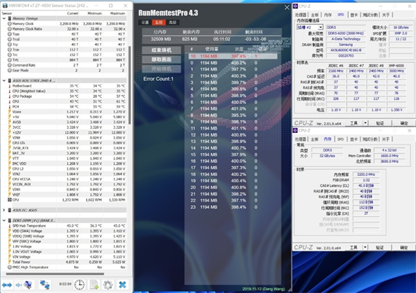 超频后的稳定性测试,一不小心进行了5个小时,进度400%,烤机过程中出现了1个错误。