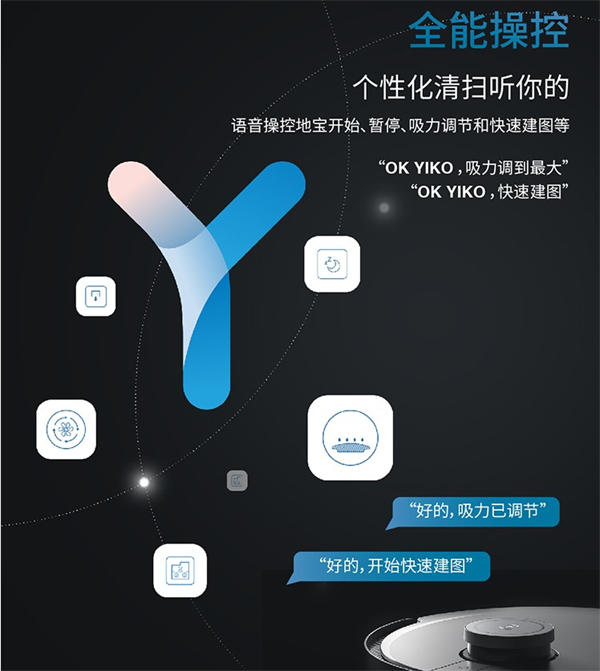 比较有意思的是这款扫地机可以构建3D立体户型图,三维成像,通过手机就能查看到你的户型结构,很有趣。另外这款产品还有个独特的语音助手——YIKO,即使你家里没有智能音箱,也能通过语音的方式控制它,而且还能把它叫到你面前的位置进行定点清洁。当然,它也可以完成一些智能音箱的功能,例如查天气、单位换算等。