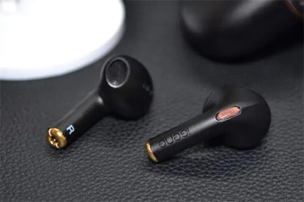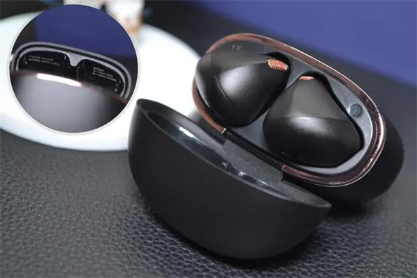 黑色的充电盒,配玫瑰金色的细节装饰,耳机看起来特别的雅致。