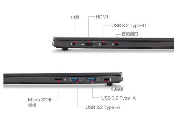 首先,我们来看下接口配置。作为一台轻薄本,LG Ultra PC提供了两个USB-A接口,一个全功能USB-C接口,HDMI 2.0接口,3.5mm音频接口和Micro SD卡槽,这样的接口数量对于日常使用来说还是够用的。