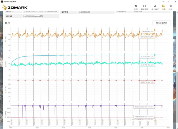 ▼最后再跑个3Dmark的压力测试,帧数稳定率在98.4%,还不错。