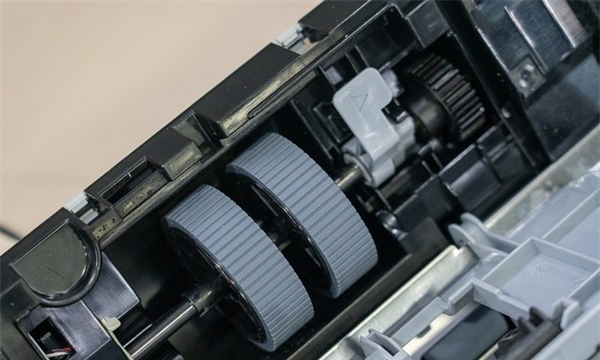 打开兄弟ADS-4900W扫描仪的舱盖,我们可以看到该产品采用的搓纸轮均采用了加厚的处理,完全能够满足日常海量的扫描需求。
