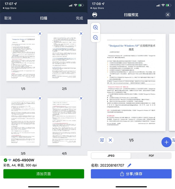 不仅如此,在扫描后可以对文件进行预览,并且能够对页面进行添加和删除操作,过程中可以对扫描后的文档进行核对。最后一步则可以对文件的名称以及格式进行调整,整个过程逻辑性较强,使用下来具有不错的上手体验。