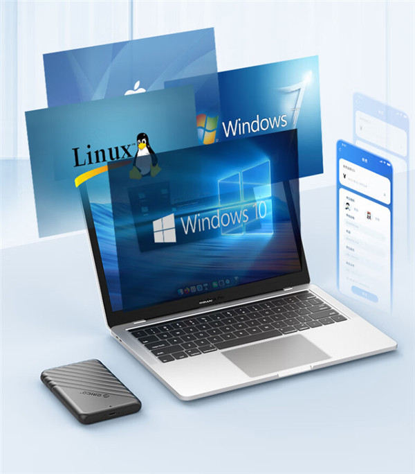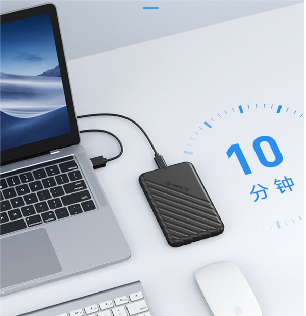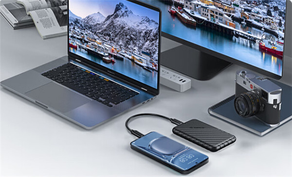 将制作好的奥睿科移动硬盘盒25PW1连接笔记本电脑、电视、手机等第三方设备,它都是即插即用,无需安装驱动,也无需单独供电,兼容的很广泛。