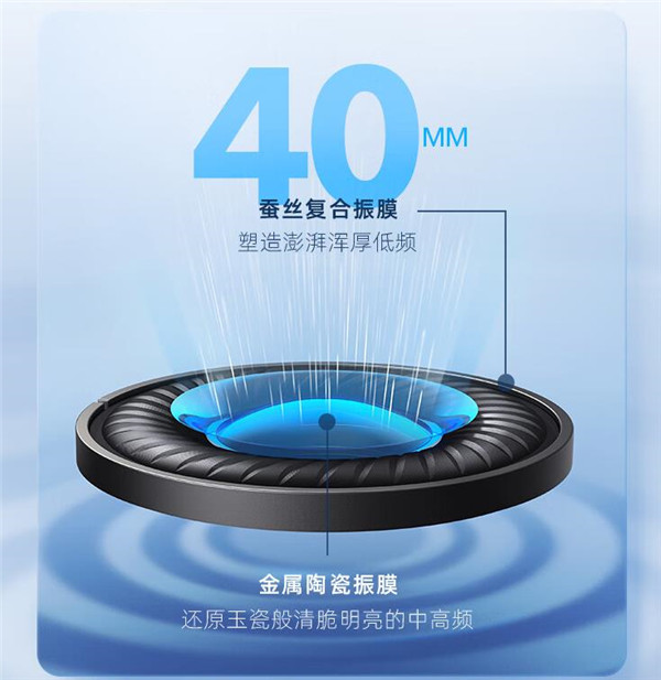 Space Q45头戴式耳机采用蚕丝复合振膜与金属陶瓷振膜构成“双声坛”组合,搭载40mm驱动单元,并且具有双金标认证。