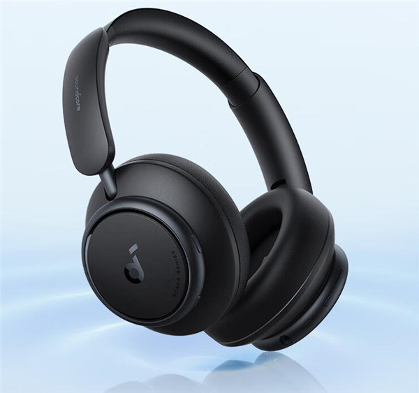 Space Q45头戴式耳机重292克,内置750mAh电池,通过USB-C接口充电,仅有黑色一款配色。该耳机采用无痕伸缩头梁设计,可折叠保存。