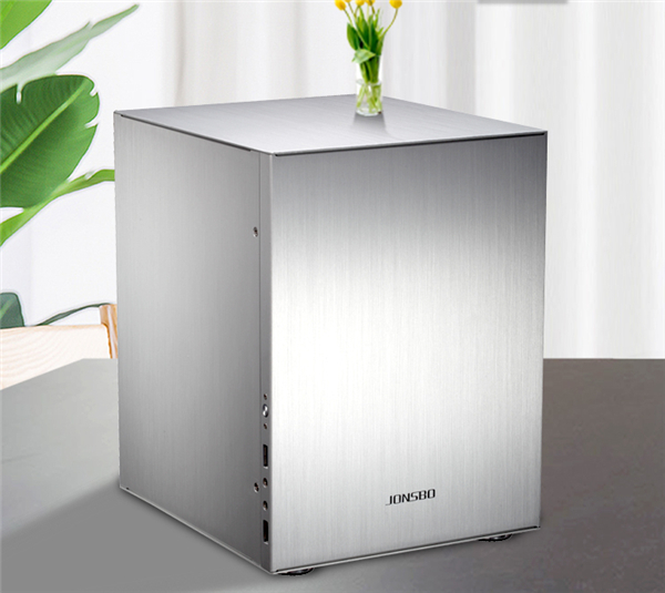 如果你就想要一台小巧的ITX主机,那么机箱可以考虑一下乔思伯C2。这款产品机身尺寸为200mm×224mm×278mm,非常的小巧,对摆放空间要求很低。机箱由全铝材质打造而成,金属拉丝表面,整体外形时尚简约、质感突出。而且全铝材质还有一个优点在于比较轻盈,搬动起来也比较方便。