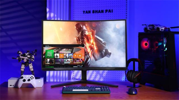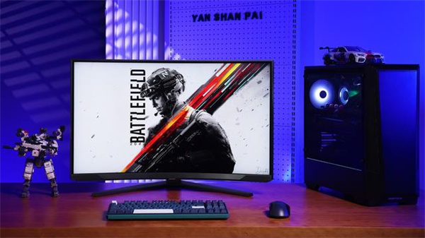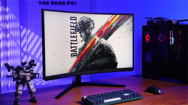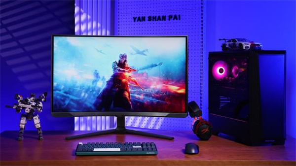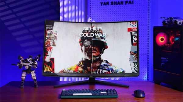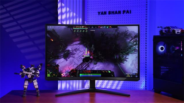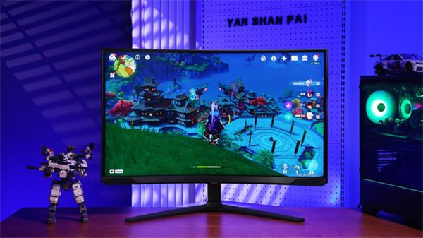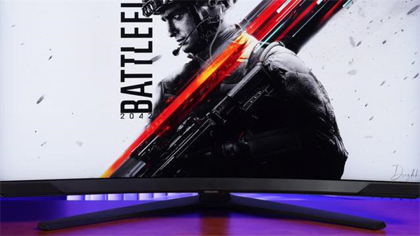 首先来看三星G85NB的正面,三星G85NB搭载了一块32英寸的屏幕,曲率达到1000R,1000R也是最贴合人眼的曲率,配合屏幕的三边窄边框设计,在日常打游戏中,三星G85NB能带来满眼全是屏幕的视觉体验,曲面屏的高级感也被完美的衬托出来。