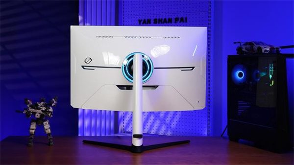 在背部设计上,更是展现了三星对于电竞显示器设计的思考,不同于常见显示器的普通白色背板,三星G85NB背部采用了白色烤漆设计风格,看起来质感十足。