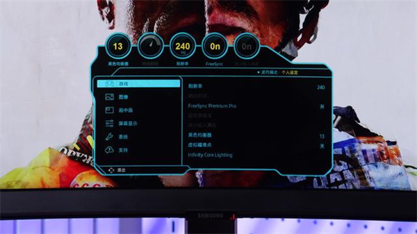 进入OSD菜单界面后,游戏、系统、画中画等选项就很清晰的展现出来,比如在游戏选项中,我们可以对刷新率进行调整,对FPS游戏感兴趣的用户也可以打开虚拟瞄准点,这对不少狙击枪爱好者来说是个不小的福音。此外,如果你是AMD用户,三星G85NB还支持AMD FreeSync Premium Pro,能大幅减少游戏画面撕裂的现象。