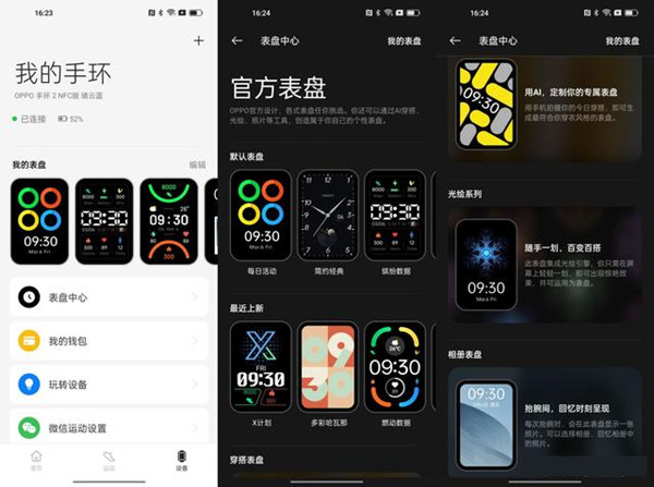 打开健康APP,在【设备】中能看到手环的一些信息,在这里你可以对手环进行一些设置。拿到手环第一件事,肯定要先换个好看的表盘了。在【设备】界面能看到OPPO 手环 2出厂预置的表盘样式,点击【表盘中心】能看到官方提供的其他表盘样式,款式很多。