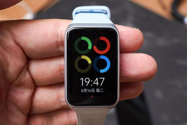 外观方面,我觉得OPPO 手环 2是能让我眼前一亮的,除了蓝白拼色的表带之外,这块比一般手环大的屏幕是它最大的亮点。