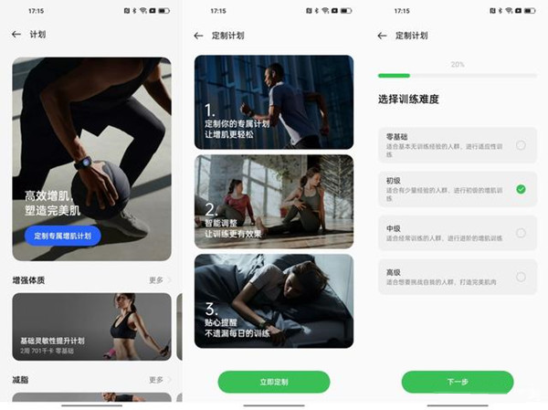 还有一部分人购买手环的主要需求就是运动,OPPO 手环 2内置了100多种运动模式,除了经常使用的跑步、骑车、游泳之外,还有划船机等模式,另外你也可以在APP内为自己量身定制独一无二的健身计划。