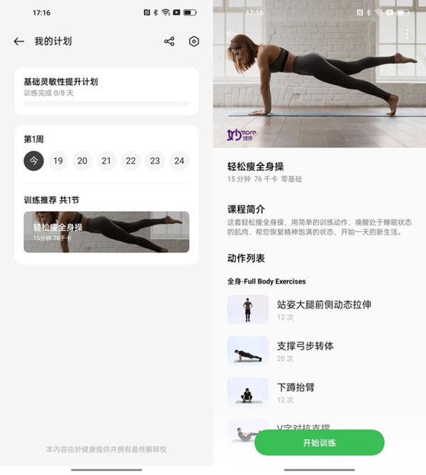 APP内提供了标准的健身视频,可以根据健身视频里面的节奏边看边连,同时手环也会去检测你的心率。