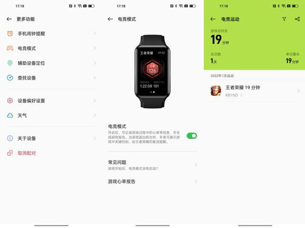 OPPO 手环 2除了常规的运动检测、提醒功能外,还加入了一个电竞模式,在玩游戏的过程中,手环会持续检测你的心率,记录你整个游戏过程中的心率浮动。当心跳过快时,手环会及时提示你,算是对手环功能的一个扩展了,还挺有意思的。