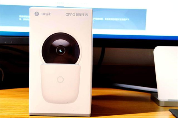 首先,我们先来看看这款产品的包装与外观设计,由内而外地看看这款产品与OPPO产品的设计传承。包装盒正面是小豚当家智能摄像头2.5K云台版的1:1渲染图,左上角是小豚当家的标识,右上角是OPPO 智美生活。