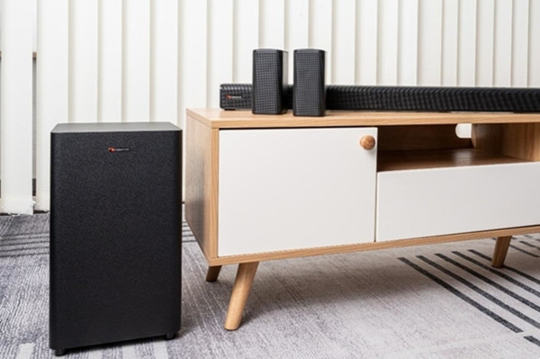 当然选择回音壁的另一个呢就是回音壁的布线相对简单,不需要复杂的布线工作。像中道Apollo 550就是采用无线连接的方式,回音壁、低音炮和环绕卫星箱之间是无需线材连接的,只需要给音箱接上电源,音箱之间就能自动通过无线来连接完成,全程无需人参与,可以说是省心省力,而且后期调整卫星箱位置的时候也更为方便。
