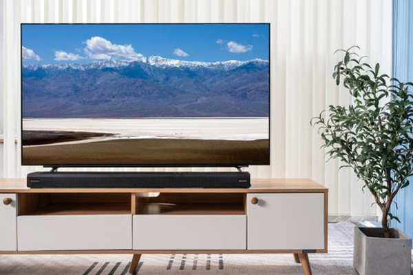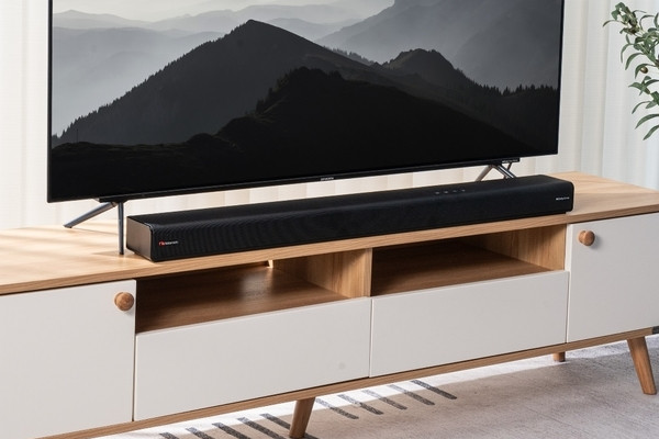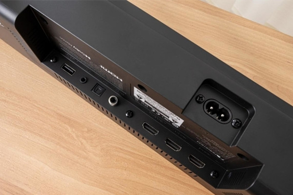 其中回音壁的体积为1000mm*102mm*67mm,长度基本等同于一台55英寸左右的电视,放在电视柜上完全不占地方。并且在这个回音壁中,总共有6个声音单元,分别为两个左右声道单元,两个中置主声道单元和两个天空声道单元,总功率达到了180W。
